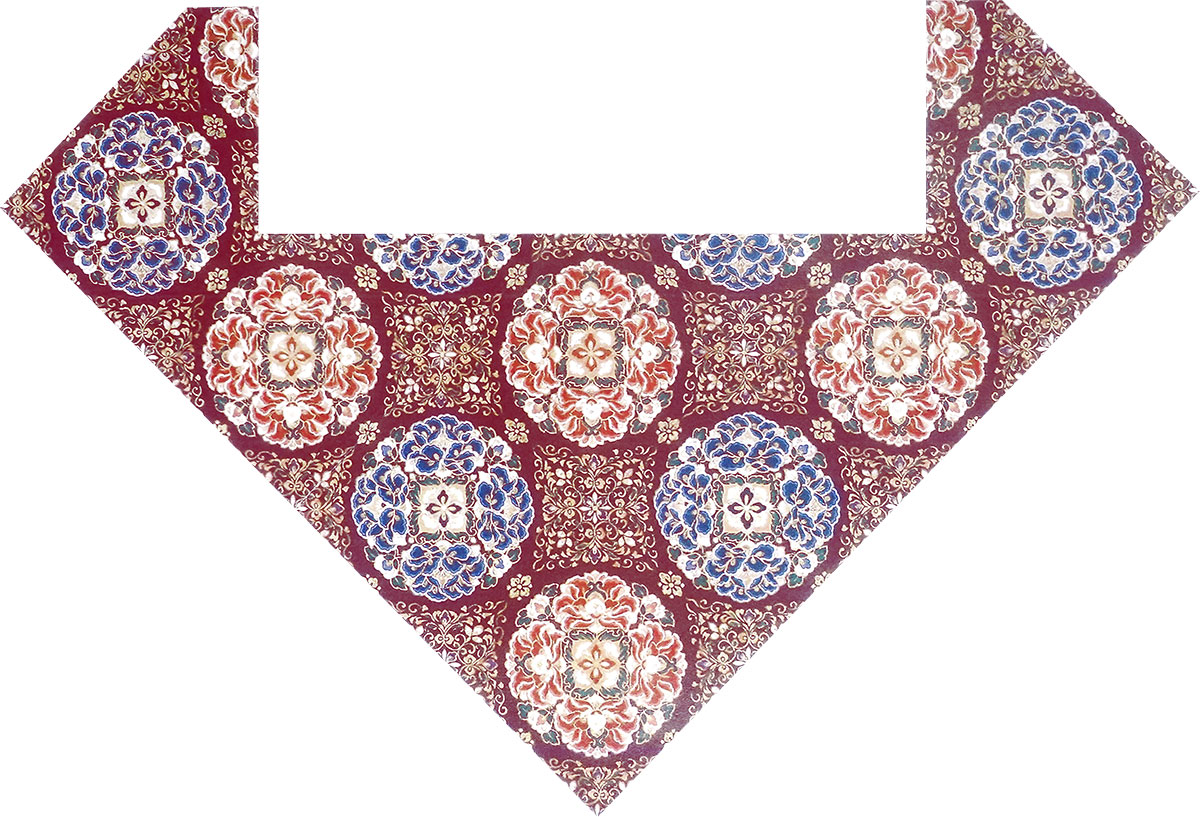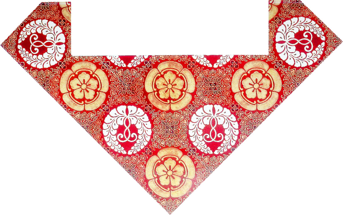 蘇芳色地 藤唐草七宝模様に御寺様御定紋織