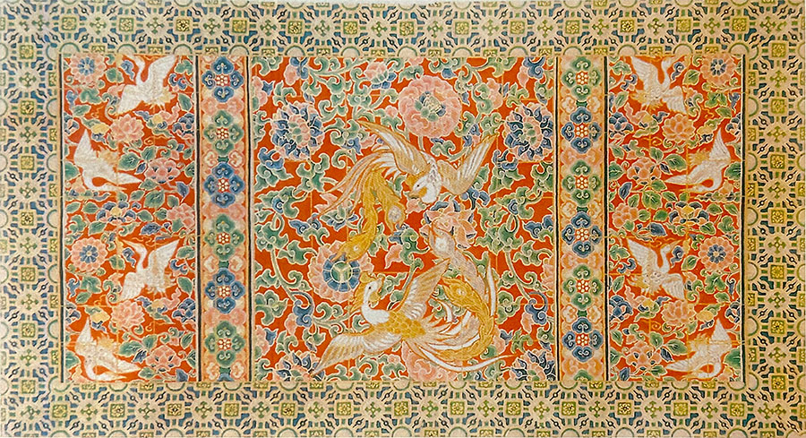台中菱唐草菊に浄土山水に菊水丹二羽鳳凰模様、縁模様は菱雲に菊模様